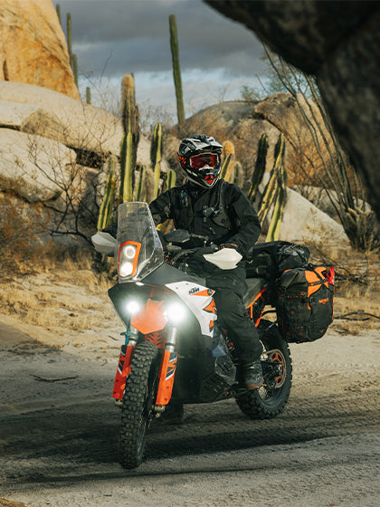 The Backcountry Pannier Kit is our flagship product. Designed for transcontinental adventure touring, enduro-style riding, and camping from your bike. It's tough-as-nails and built to take a beating, and we stand behind it with a lifetime guarantee.