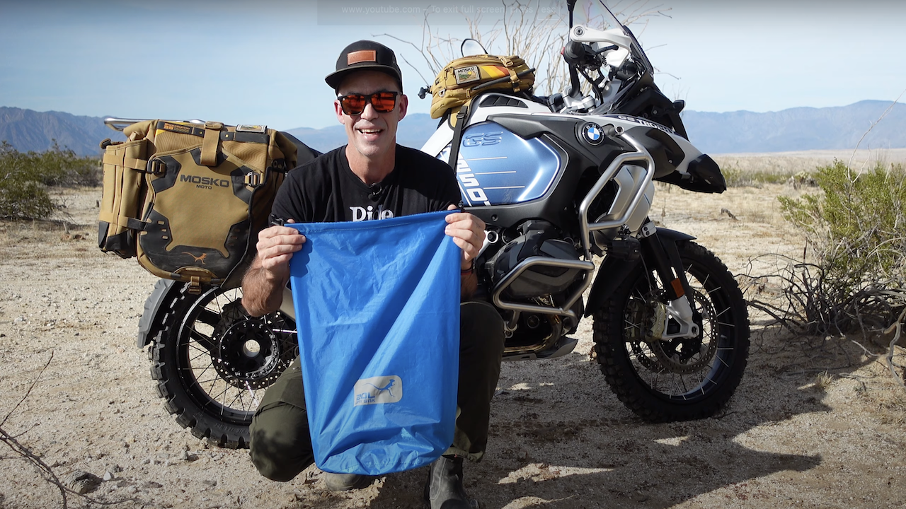 The 20L Drysak is our solution for keeping dirty/damp items like shoes, dirty laundry, swim trunks, and towels separate from your clean/dry belongings inside your bag. Put those dirty/damp items inside the drysak, then put the drysak inside your pannier or duffle. It packs tiny when not in use and weighs almost nothing.