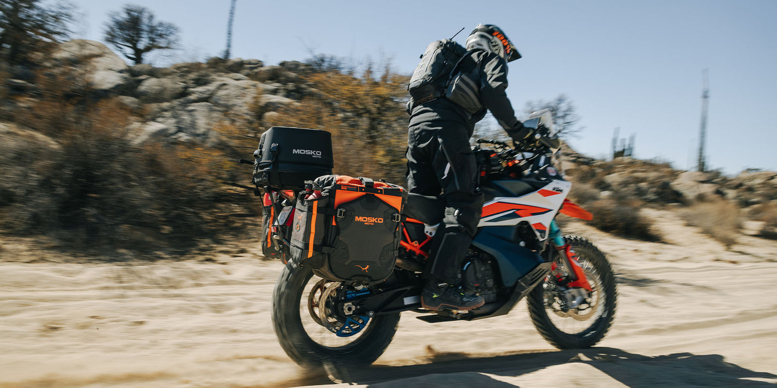 Waterproof, easy-access, 24-liter tail bag with versatile MOLLE expansion and padded internal gear organizer.