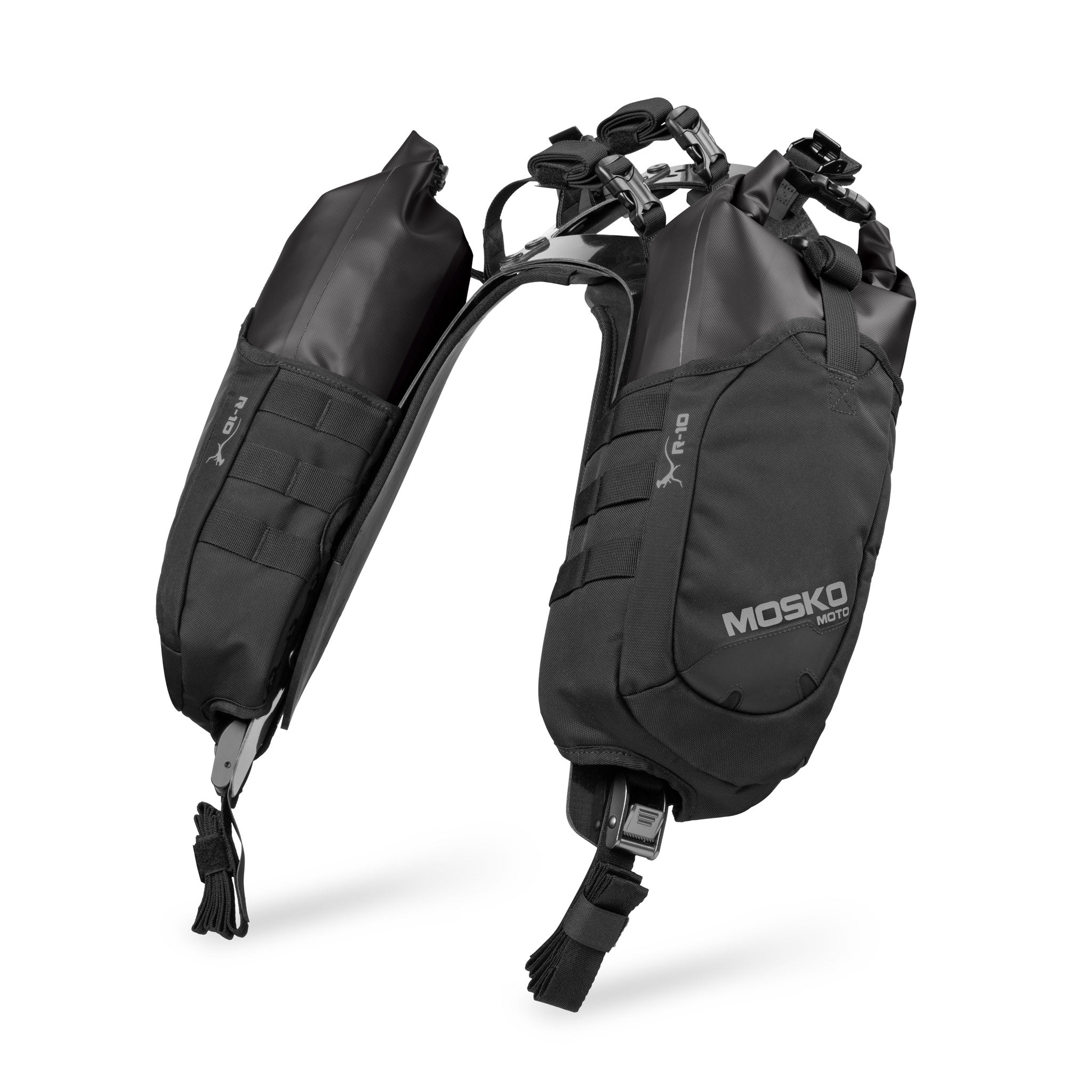 The V2.0 integrates our CURV® composite harness found on our flagship Reckless 80 and Reckless 40, which includes a rear fuel fill cutout for bikes with subframe tanks. The R10 V2.0 has upgraded to more robust 25mm SJ buckles, and adds webbing compression straps for lashing down layers, fuel bottles, or a small tail bag.