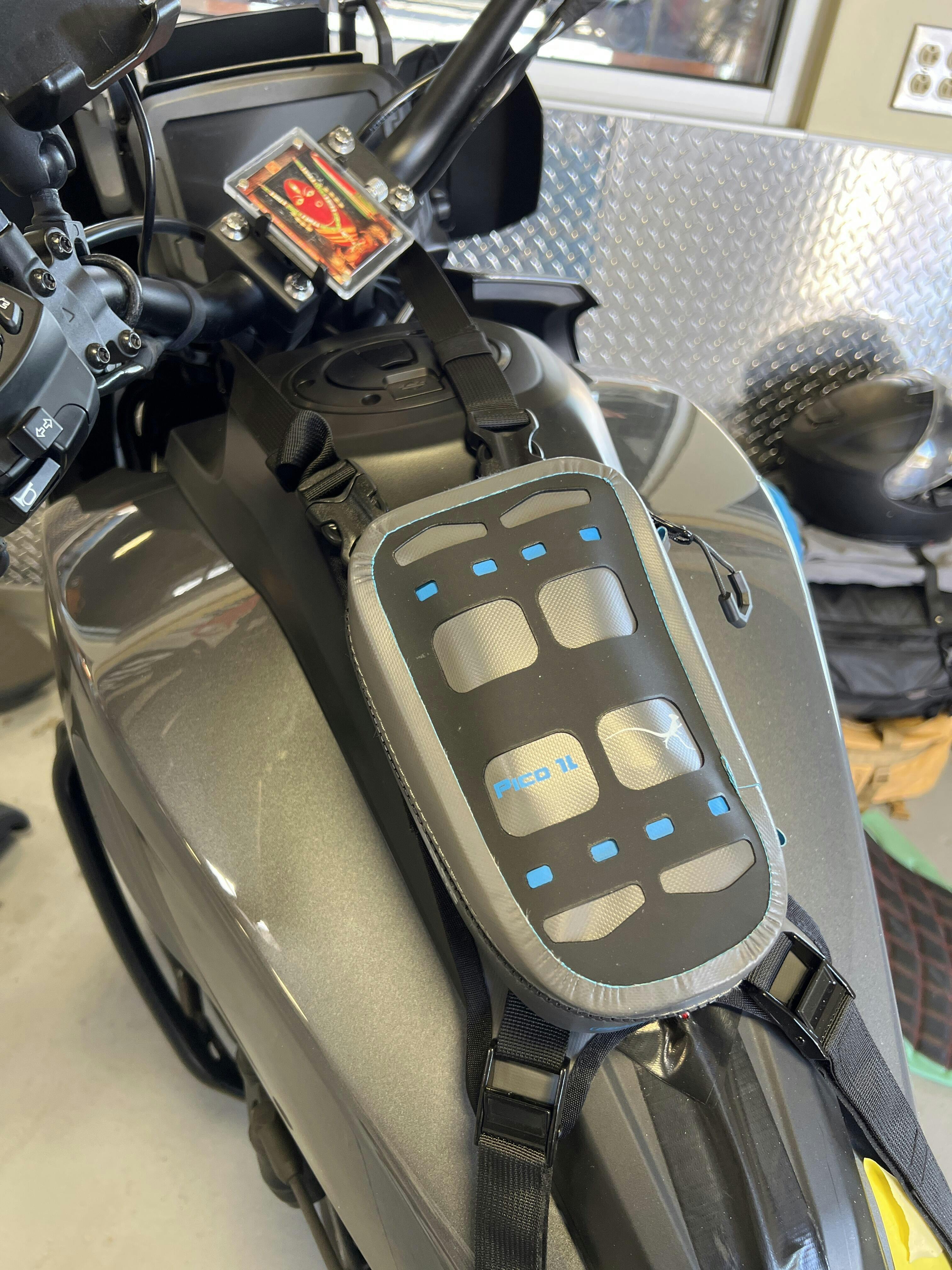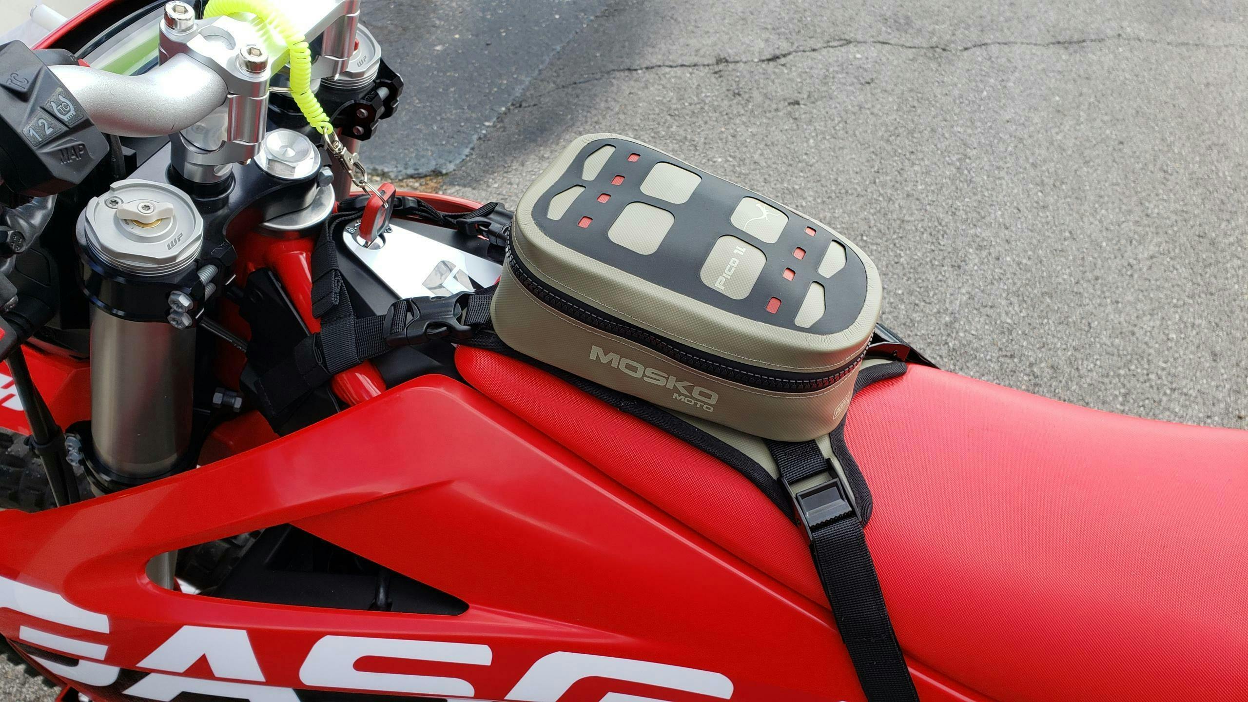 The Pico is a small, minimalist tank bag for people who normally don't like tank bags. It won't stop you from standing over the tank on the most technical terrain and it won't fit the kitchen sink.