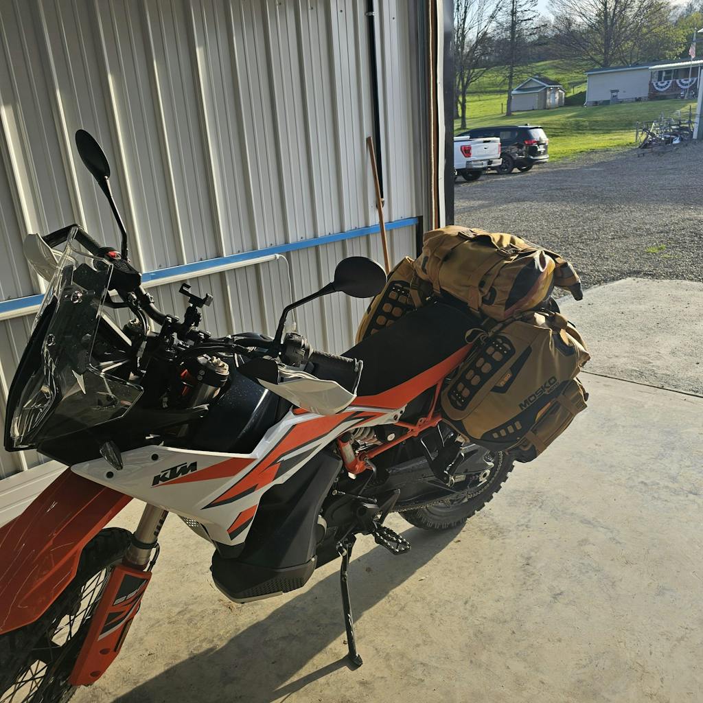 The R80 is our large capacity rackless luggage system designed for off-road riding/camping, Backcountry Discovery Route exploration, and international fly-to-ride trips. The Reckless 80L is 100% waterproof, expands and contracts for various load volumes and riding conditions, and features adjustable leg angles to fit enduros up to larger ADV bikes.