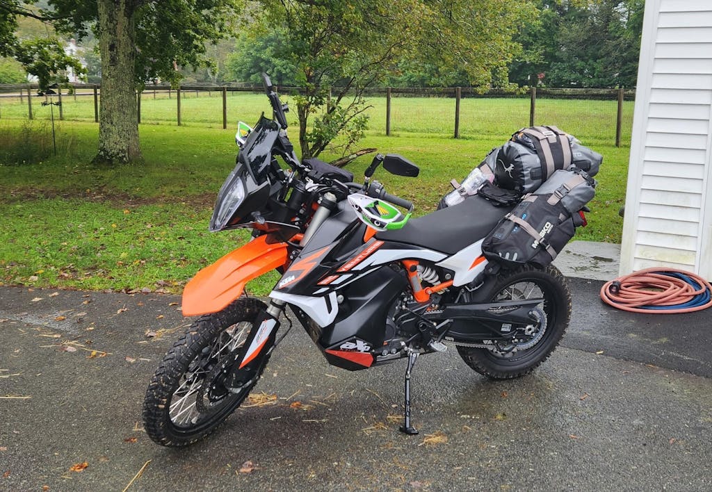 Reckless 80’s on KTM 690s with the Nomini tank bag. Couldn’t be happier with the entire setup on both bikes. After some trips and the side bags break in, the stuff sacks pack in and out really well.